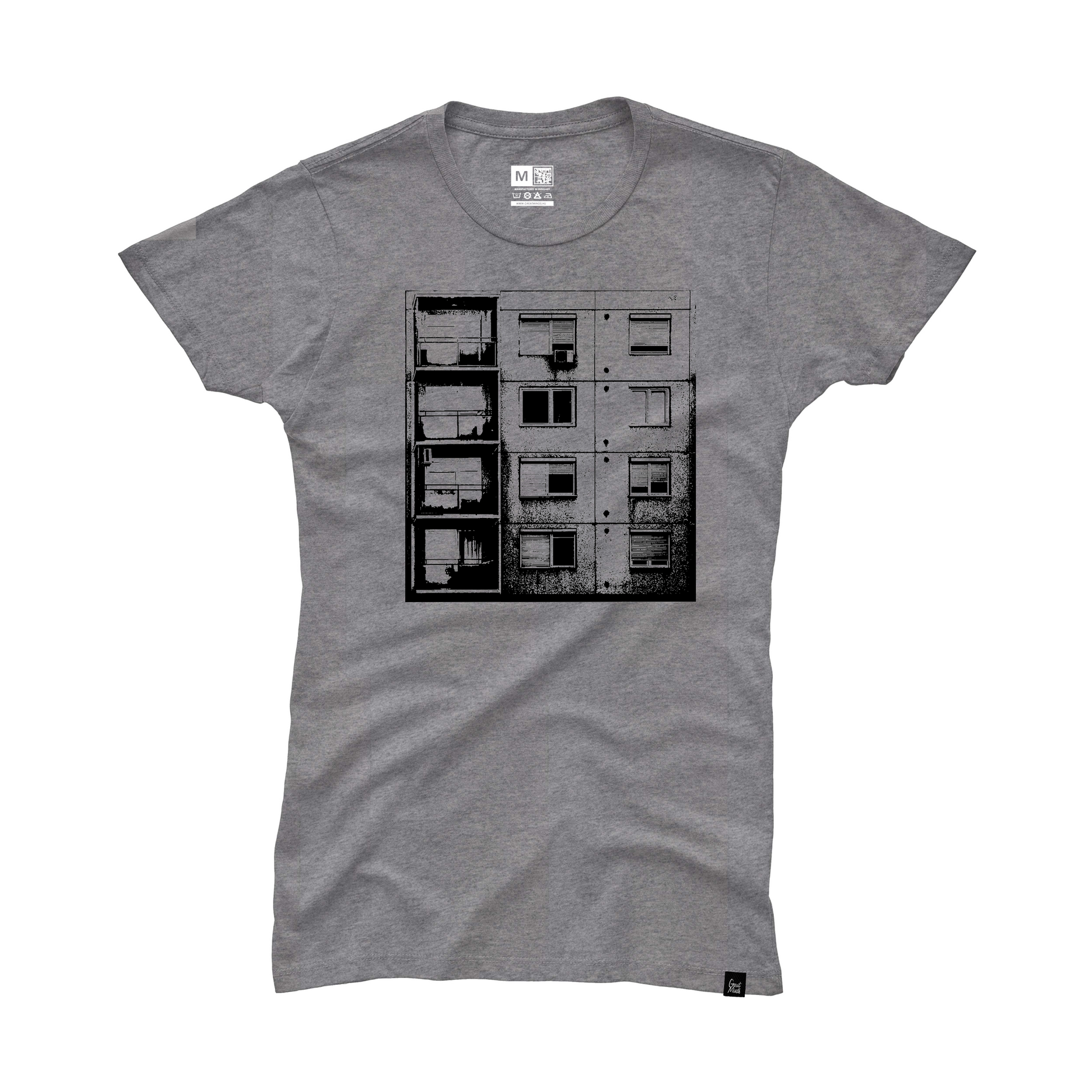 Garden City Hommage, klasszikus panelblokk női pólón, minden vérbeli vagy wannabe kertvárosinak.