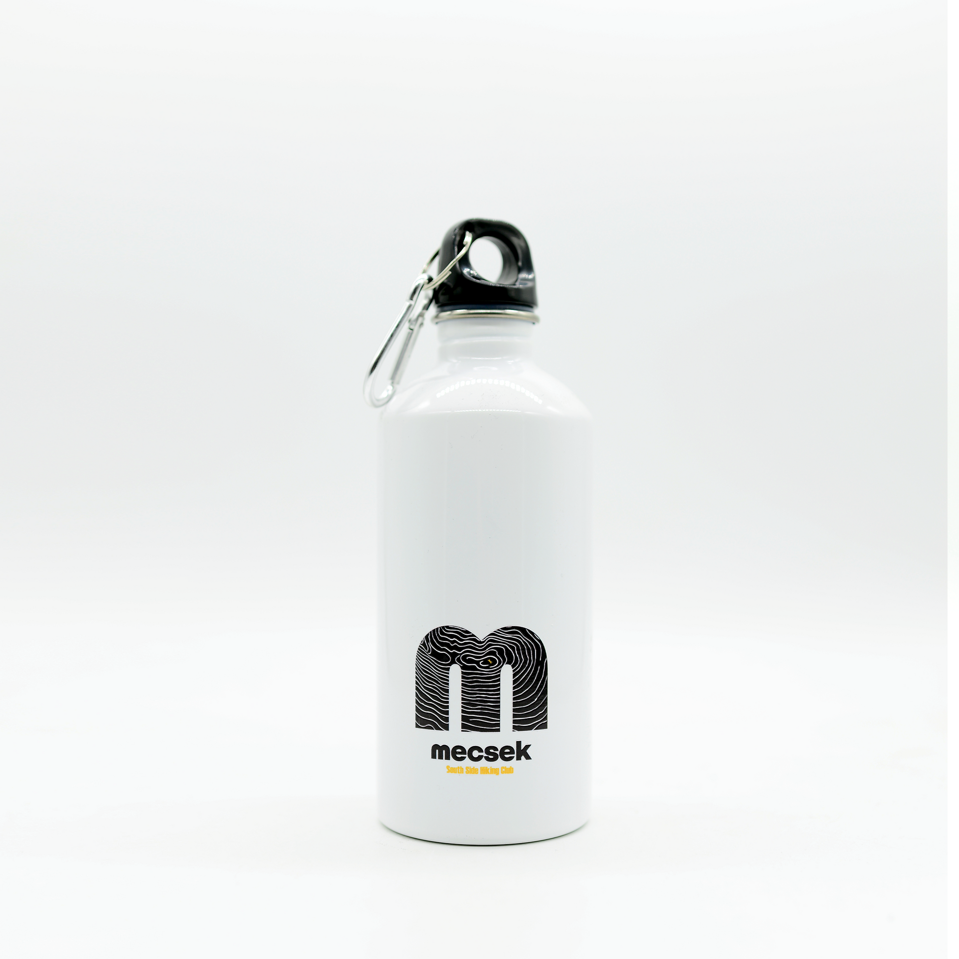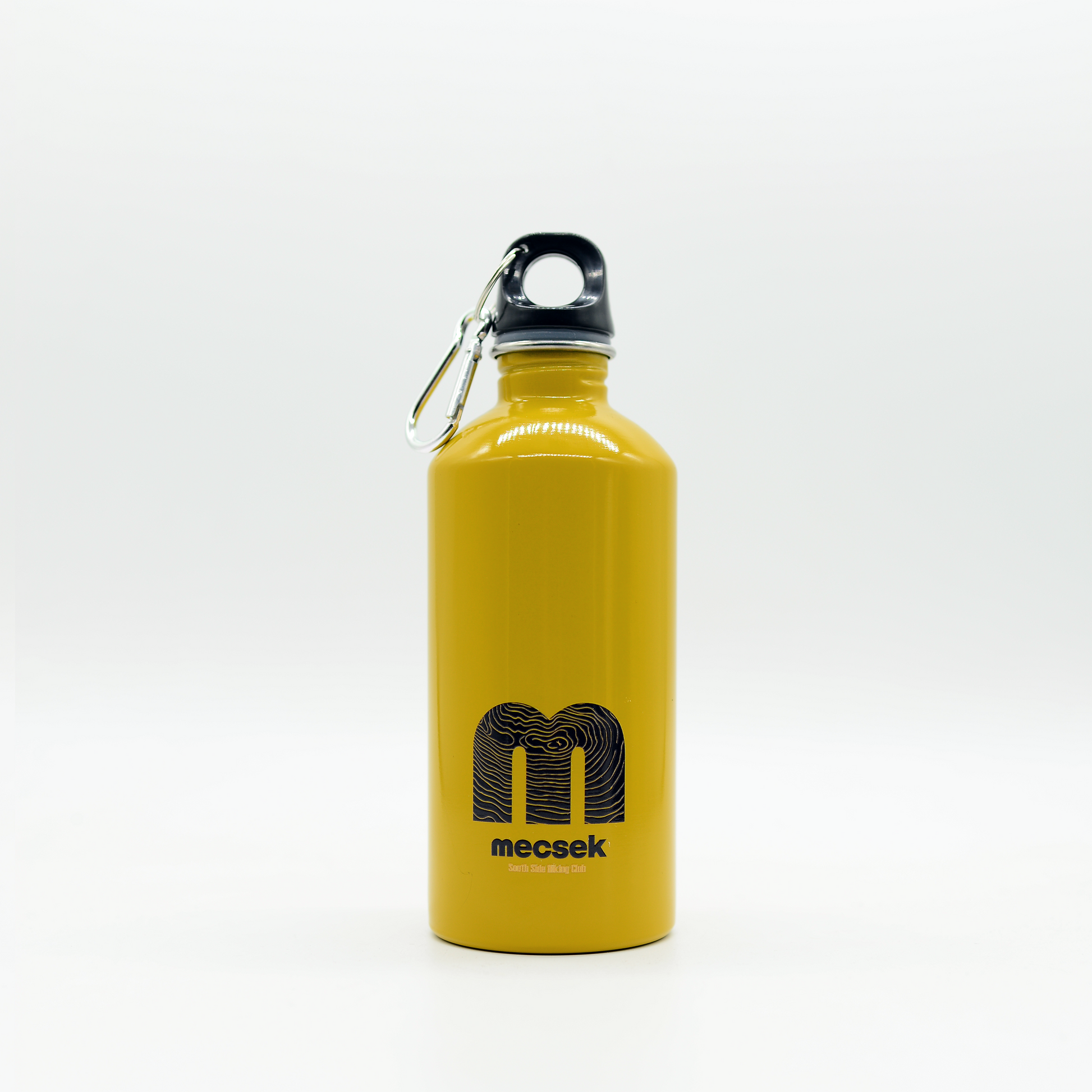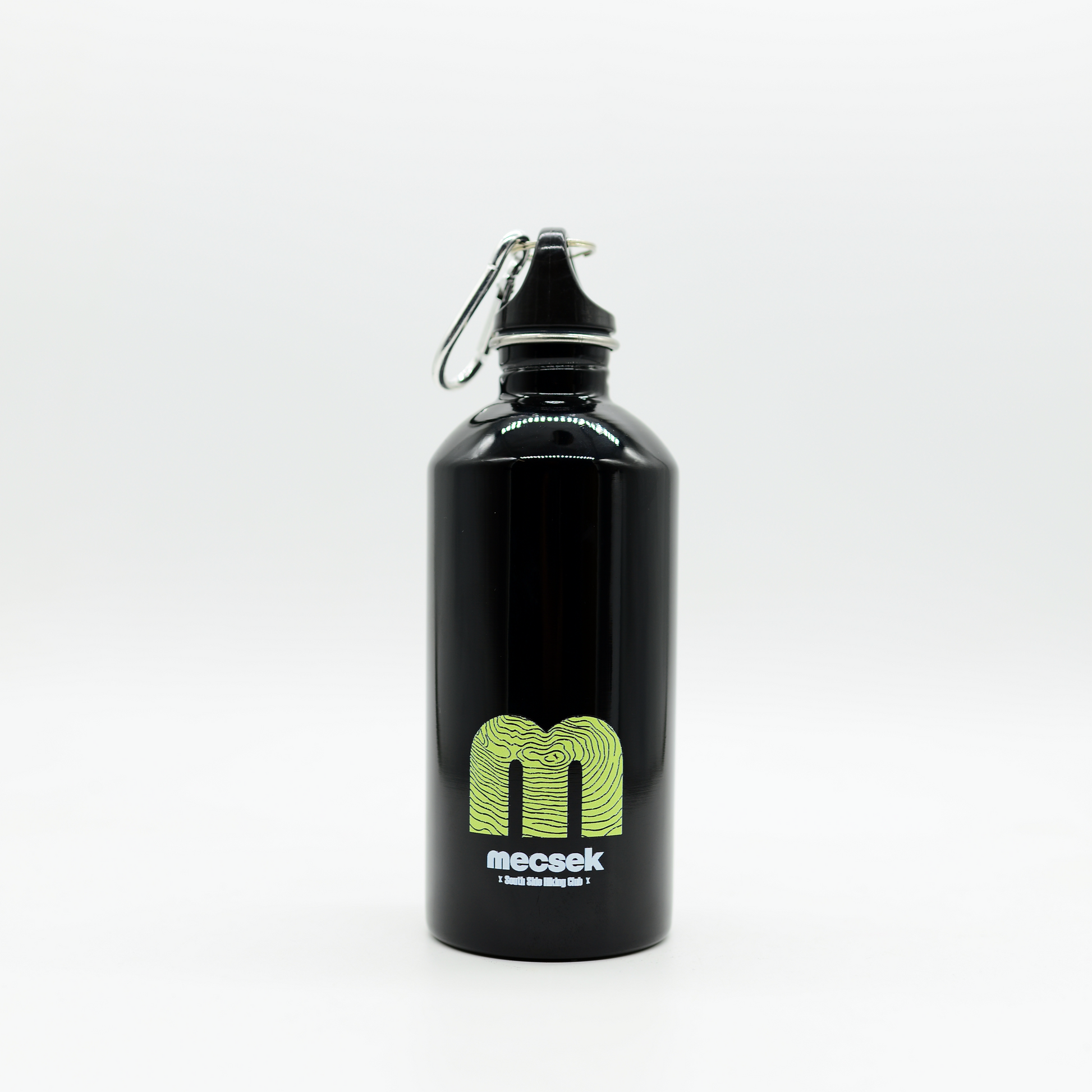 Szimplafalú palack újrahasznosított rozsdamentes acélból (90% újrahasznosított rozsdamentes acél és 10% rozsdamentes acél), karabinerrel. 500 ml. Szivárgásmentes.